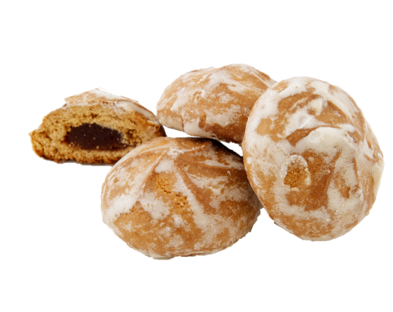 Small round wheat pastries filled with filling of raspberry taste. Texture - soft. Glazed with sugar icing.