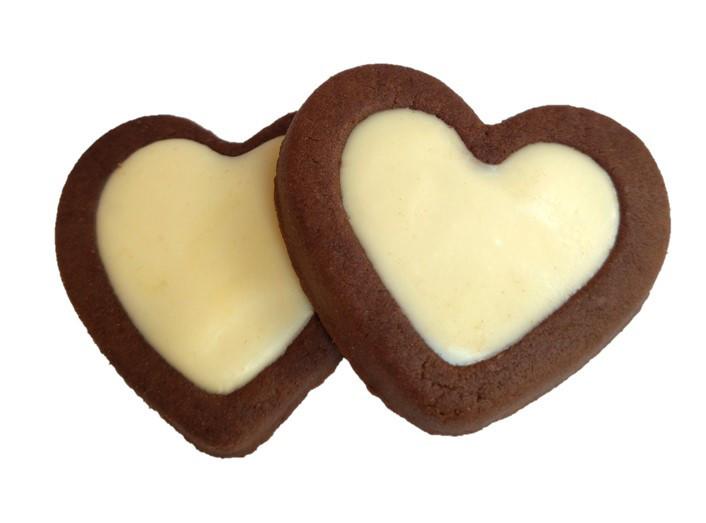 Heart-shaped cookies with gingerbread spices, stuffed with white creamy filling.