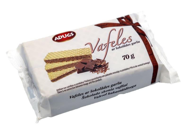Taisnstūrformas vafeles ar šokolādes garšas un aromāta krēma pildījumu