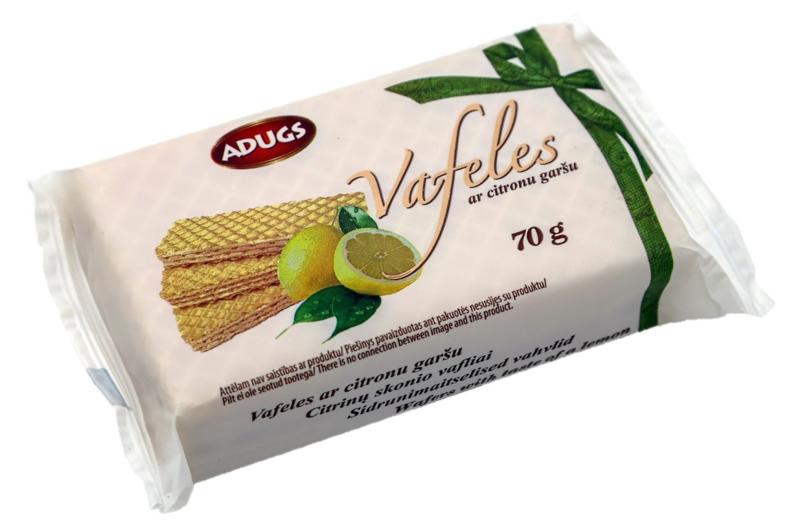 Taisnstūrformas vafeles ar citronu garšas un aromāta krēma pildījumu