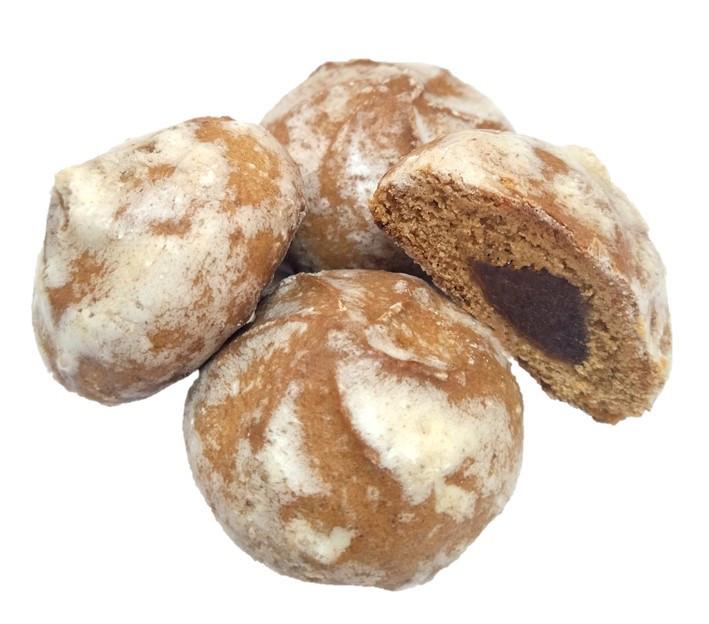 Apaļas formas ar garšvielu un ābolu pildījumu, konsistence viendabīga, irdena, krāsa no gaiši brūnas līdz tumši brūnai. Glazēti ar cukura glazūru.